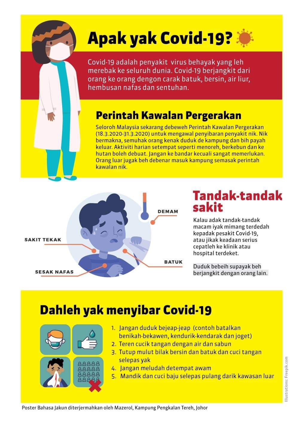 Jacsmk On Twitter Information Poster On What Is Covid 19 The Symptoms Preventing The Spread Perintahkawalanpergerakan In A Range Of Org Asli Languages These 4 Are In Temiar Temuan N9 Dengkil Banting